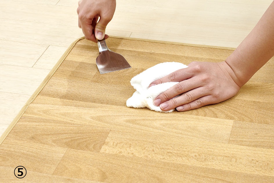 ②まず、へらなどで汚れを押し出し、取り除きます。